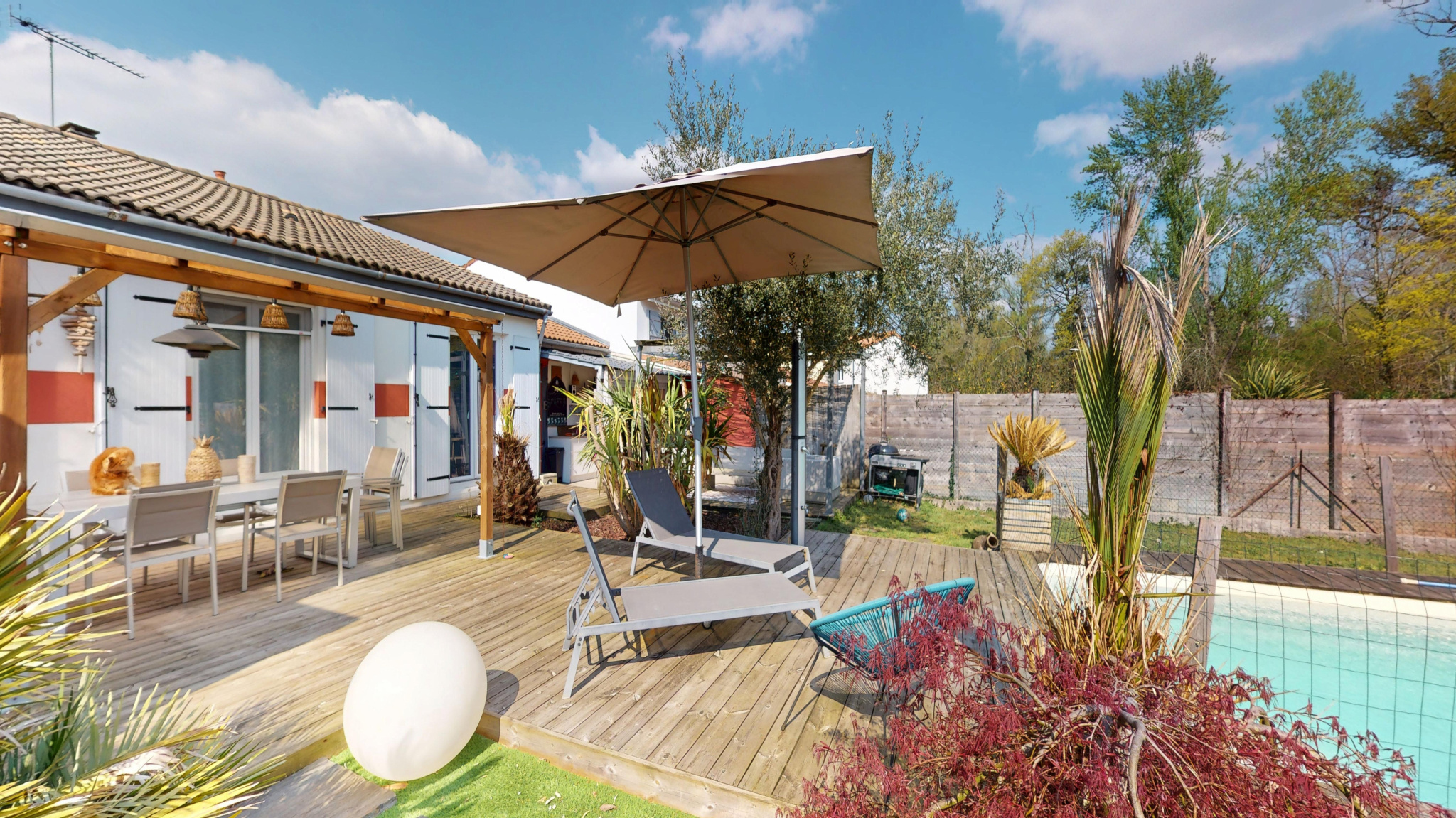 Vous apprécierez tout particulièrement son joli jardin végétalisé, sa terrasse avec cuisine d’été invitant à la convivialité, sa piscine et son garage attenant.